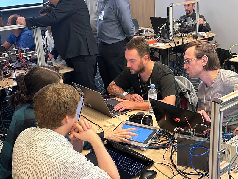 Участники самостоятельно программировали логику работы ПЛК, создавали проекты для HMI, управляли сервосистемами и отрабатывали сценарии взаимодействия между устройствами.